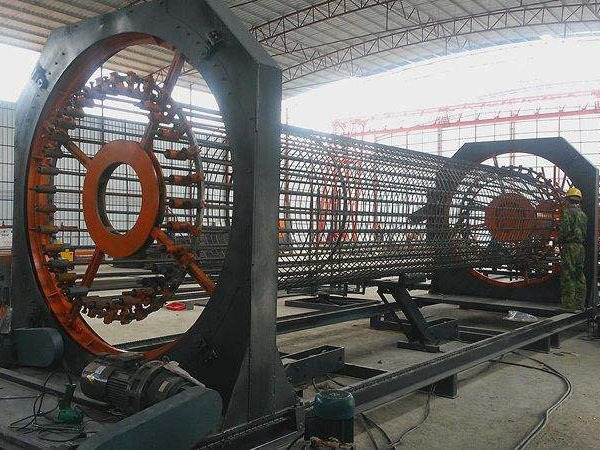 ◆ 加工速度快:正常情況下備料及滾焊部分 3人一班,分二班作業(yè),6個(gè)人一天就可以加工出 30多個(gè) 12米長(zhǎng)成品的籠子(備料、滾焊、加強(qiáng)筋安裝、探測(cè)管安裝、導(dǎo)向墊塊安裝等),工作效率非常高。